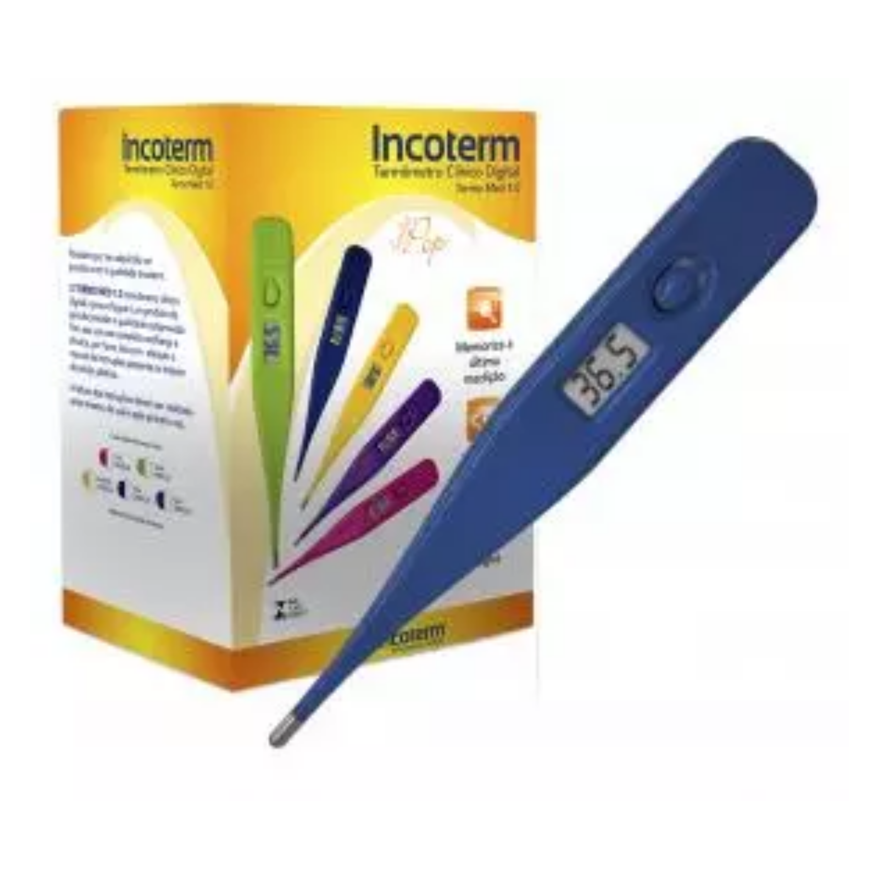 O Termômetro Clínico Digital Termomed Incoterm é um produto verificado e aprovado pelo INMETRO com precisão e qualidade comprovada. Produto de fácil utilização, durável e com resultados confiáveis.É à prova d’água, possui indicador sonoro com alertas diferenciados para temperatura normal e febril, sua tomada de temperatura é cerca de 1 minuto.