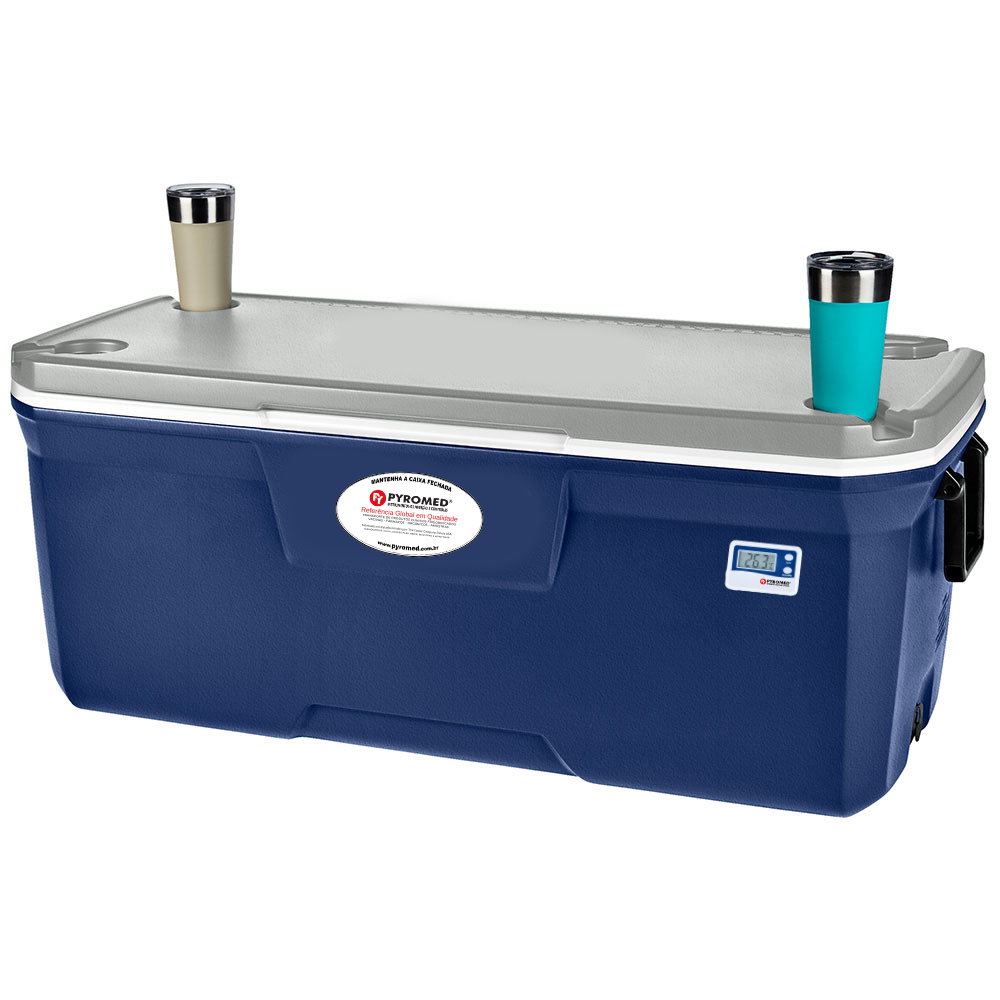 - Com tampa e corpo totalmente isolados com PU, a caixa mantém o gelo por até 6 dias em temperaturas de até 32ºC.
