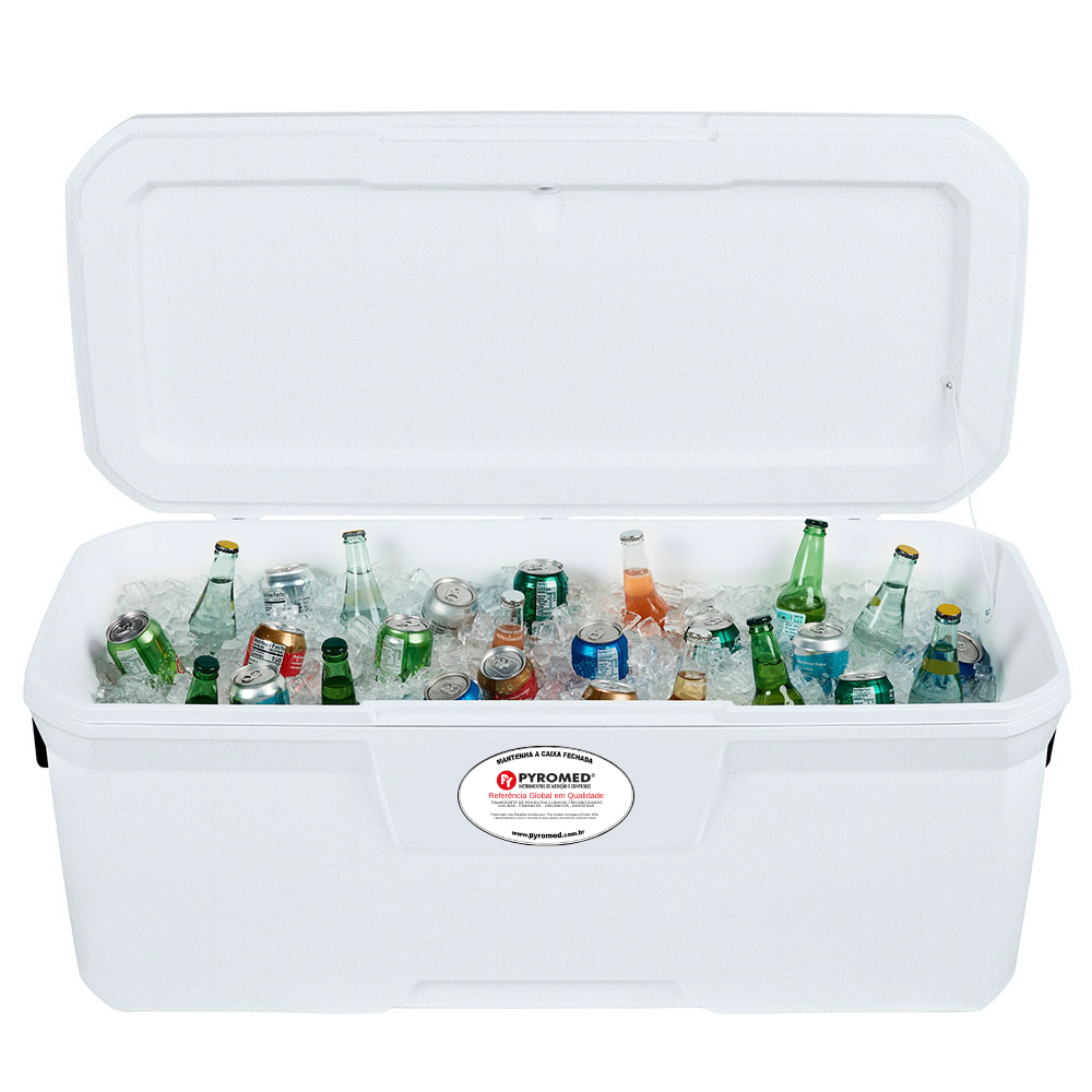 - Com tampa e corpo totalmente isolados com PU, a caixa mantém o gelo por até 6 dias em temperaturas de até 32ºC.
