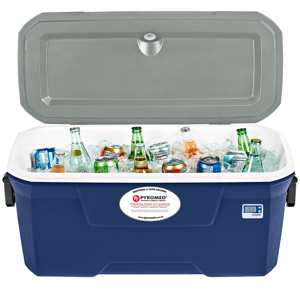 - Com tampa e corpo totalmente isolados com PU, a caixa mantém o gelo por até 5 dias em temperaturas de até 32ºC.