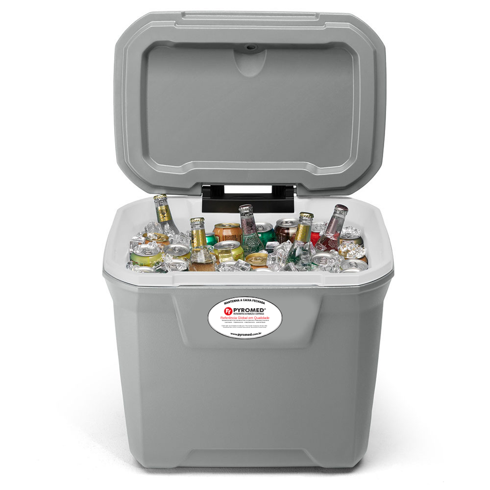 - Com tampa e corpo totalmente isolados com PU, a caixa mantém o gelo por até 4 dias em temperaturas de até 32C.
