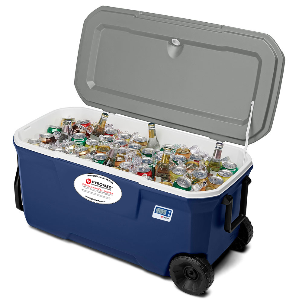 - Com tampa e corpo totalmente isolados com PU, a caixa mantém o gelo por até 5 dias em temperaturas de até 32ºC.