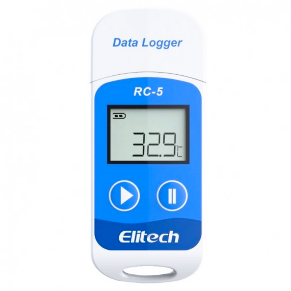 O data logger de temperatura RC-5 possui interface de conexão USB plug-and-play, suporte de montagem (opcional), display LCD multifuncional, tem a capacidade de armazenamento de 32000 leituras (podendo ser reconfigurado mediante software Elitechlog), possui alarmes configuráveis em até 2 pontos, bateria CR2032 substituível, operação com botão duplo, grau de proteção (IP67). Para obter a análise de dados de forma rápida e segura, o usuário poderá exportar os dados em formatos PDF ou Excel por meio do software de gerenciamento de dados Elitechlog. Seu design robusto e compacto atende às exigências dinâmicas dos mais diferentes sistemas de armazenamento e transporte sensível, sendo suas principais aplicações o gerenciamento da cadeia de frio em produtos farmacêuticos, alimentícios, biológicos e laboratoriais.