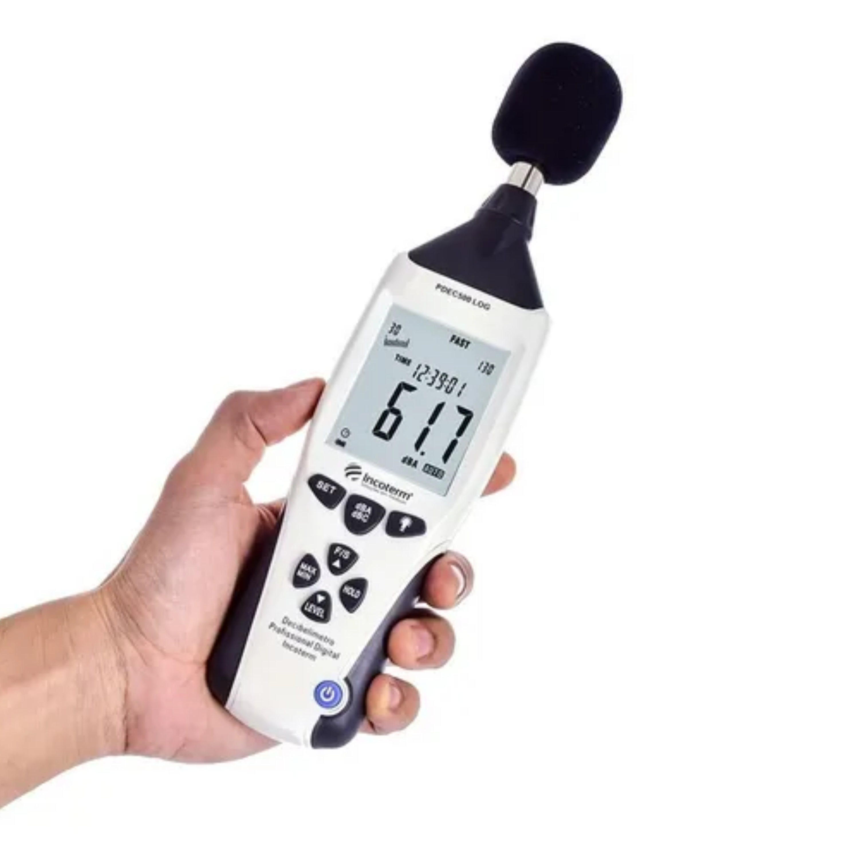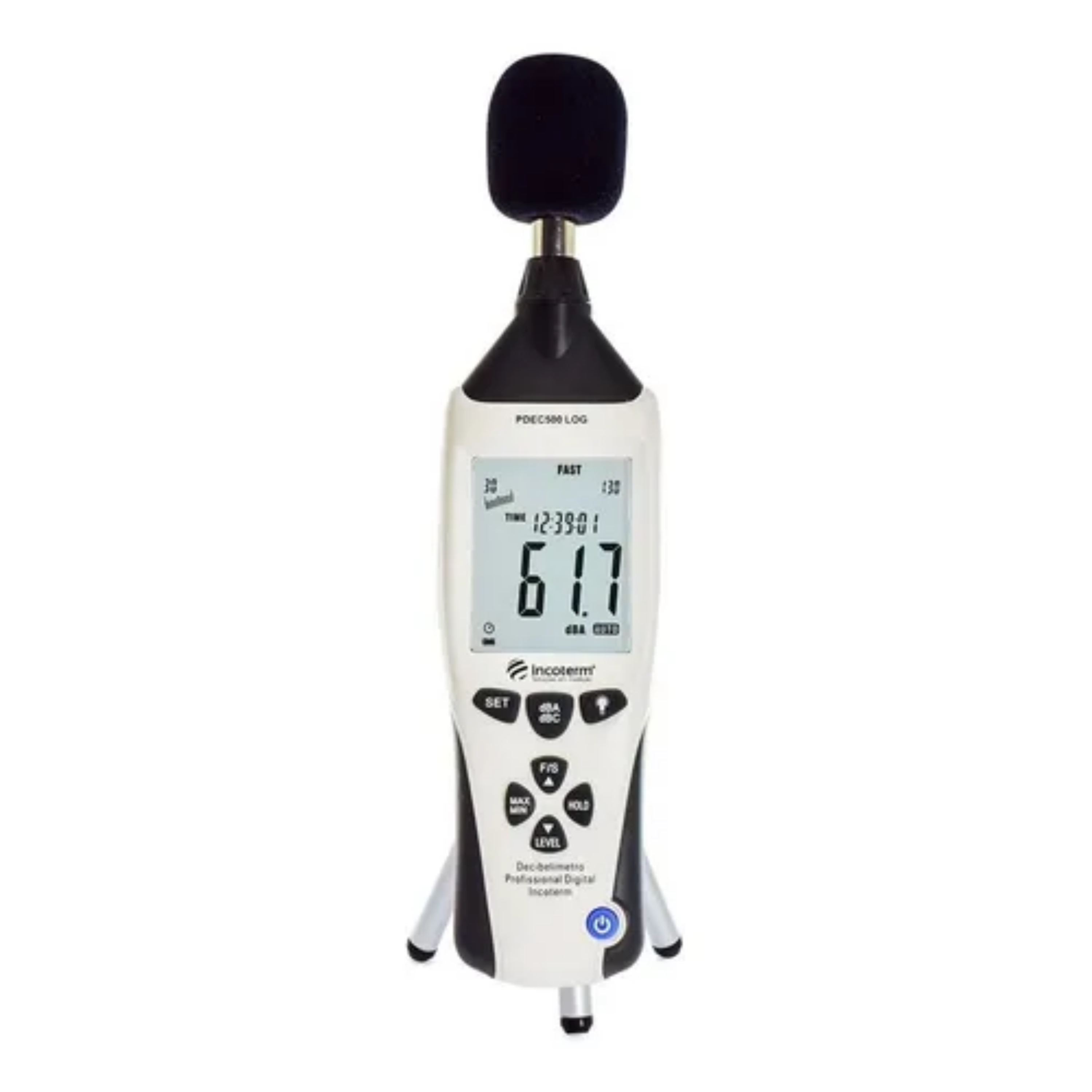 Faixas de medição: baixa 30 – 80 dB; média 50 – 100 dB; alta 80 -130 dB e automática de 30 – 130 dB