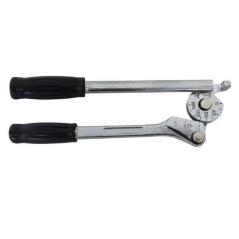 O design com lateral aberta desliza sobre qualquer ponto do tubo, facilita dobras de até 180˚ em raios menores com esforço mínimo. Calibrados para mostrar o ângulo da dobra. O início rápido em 90˚ requer muito menos esforço para fazer dobras rápidas e precisas. Cada ferramenta dobra um lado.