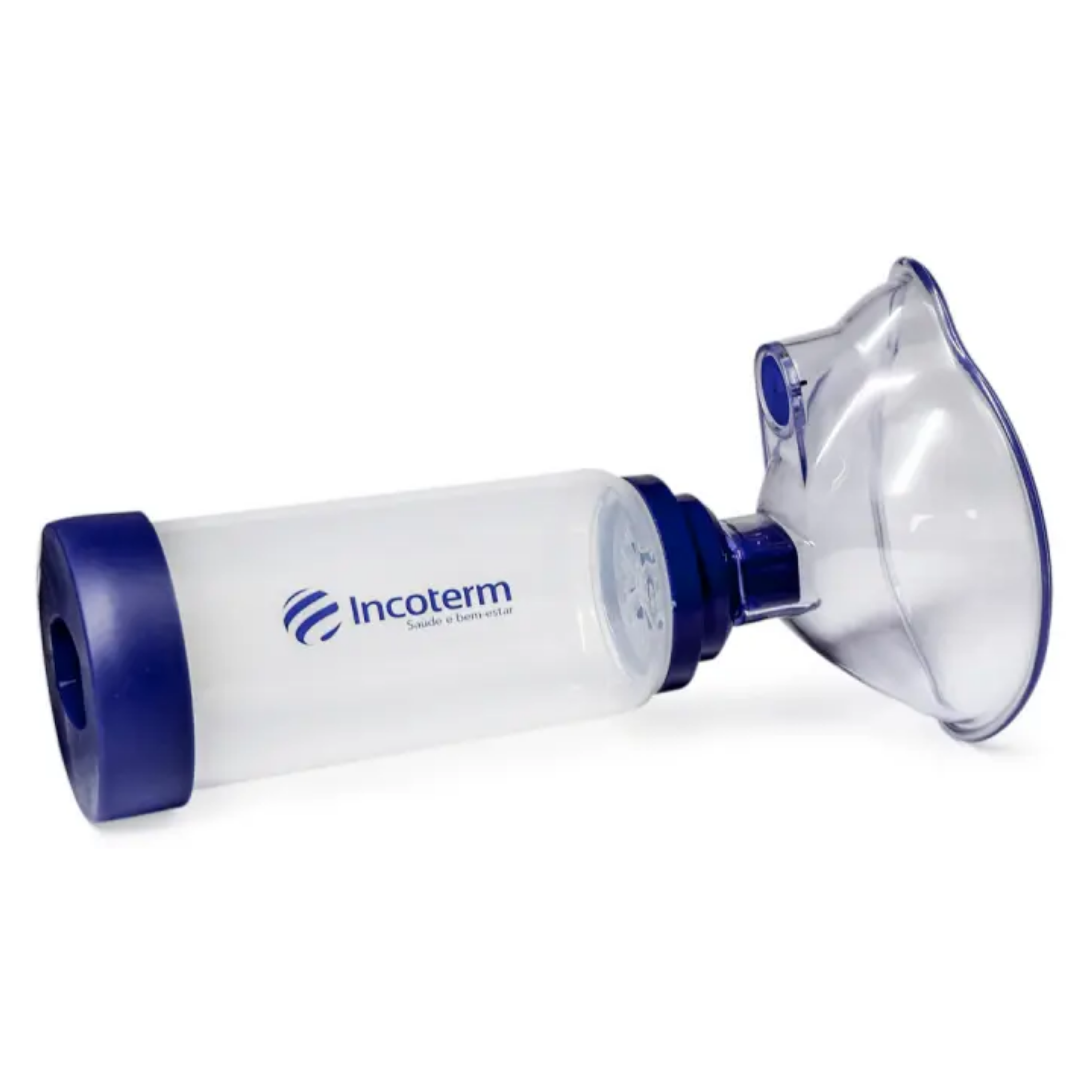 Corpo e máscara possuem material transparentes para facilitar a limpeza e permitir melhor visualização do medicamento;