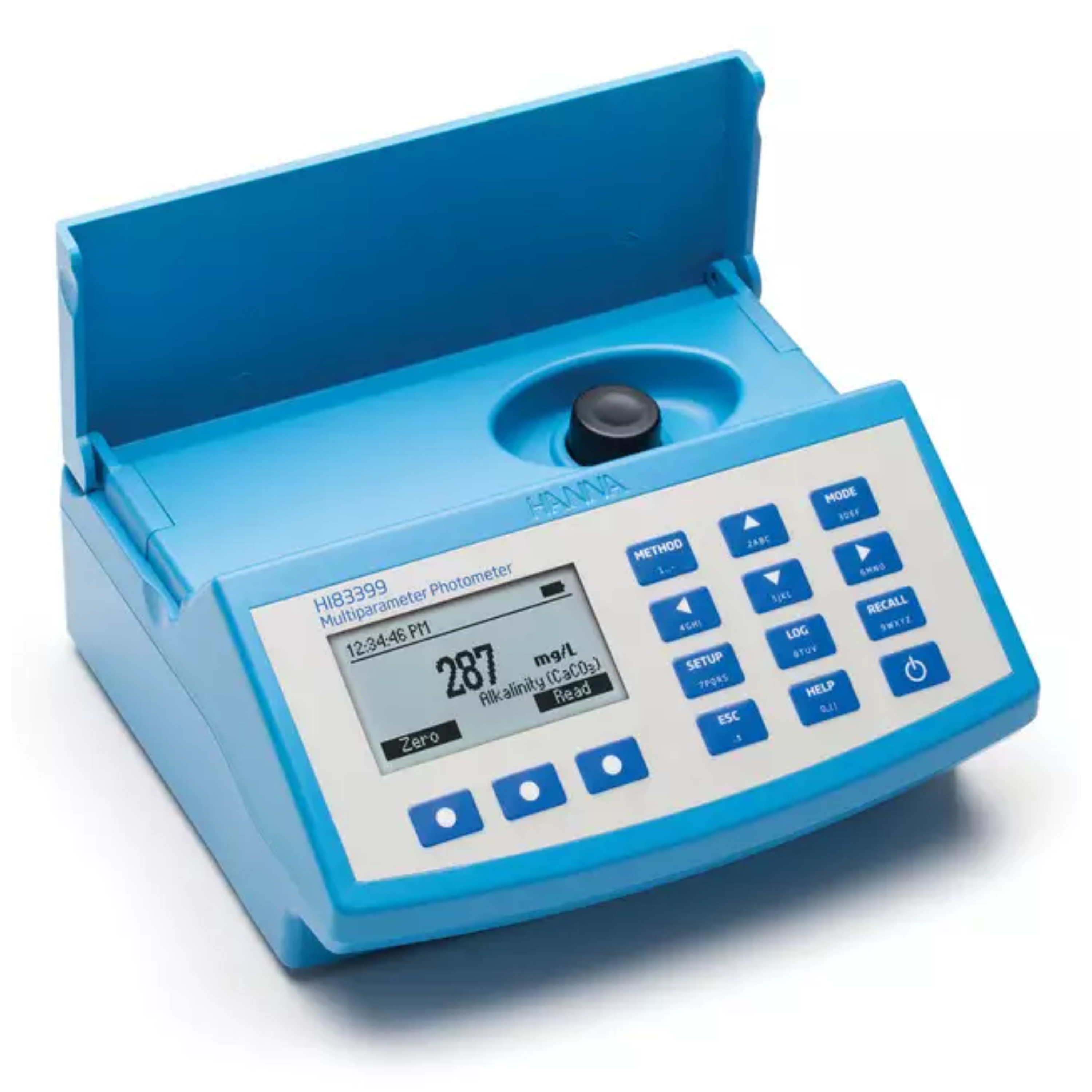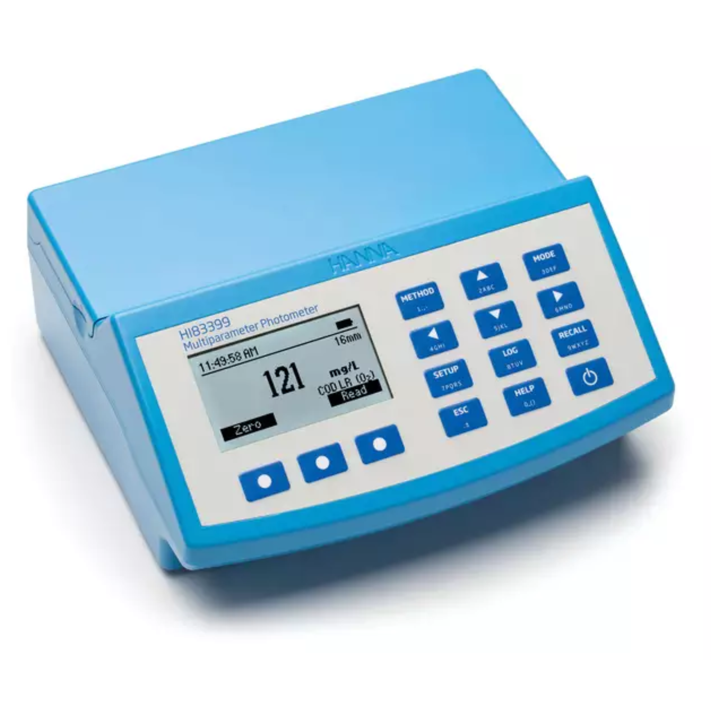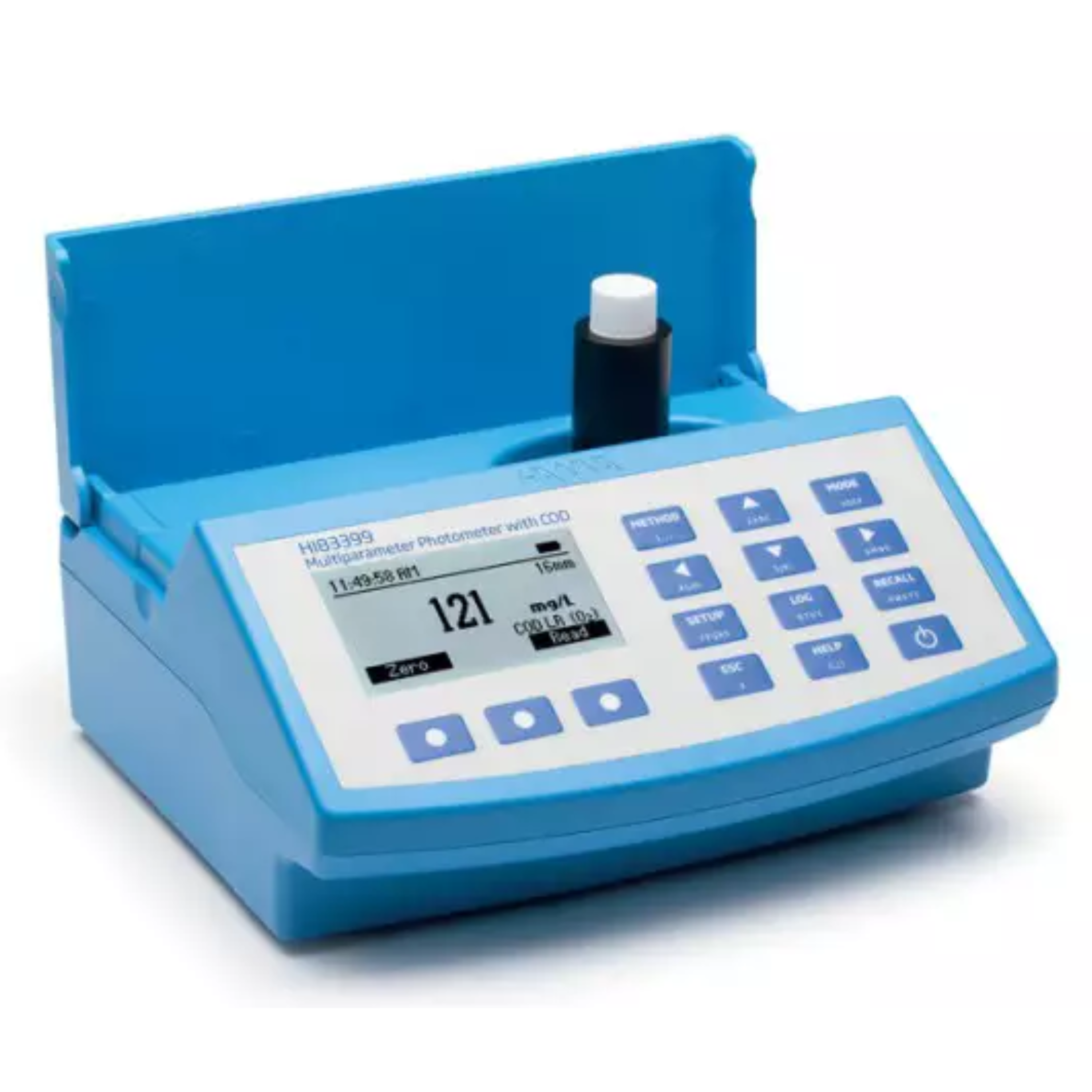 - O HI83399 é fornecido com 4 cubetas com tampa, tesoura, pano para a limpeza de cubetas, cabo USB, adaptador de energia, adaptador de frasco de 16 mm, 6 frascos de 16 mm com tampa, frasco de vidro de 60 mL, certificado de qualidade do instrumento e manual de instruções.