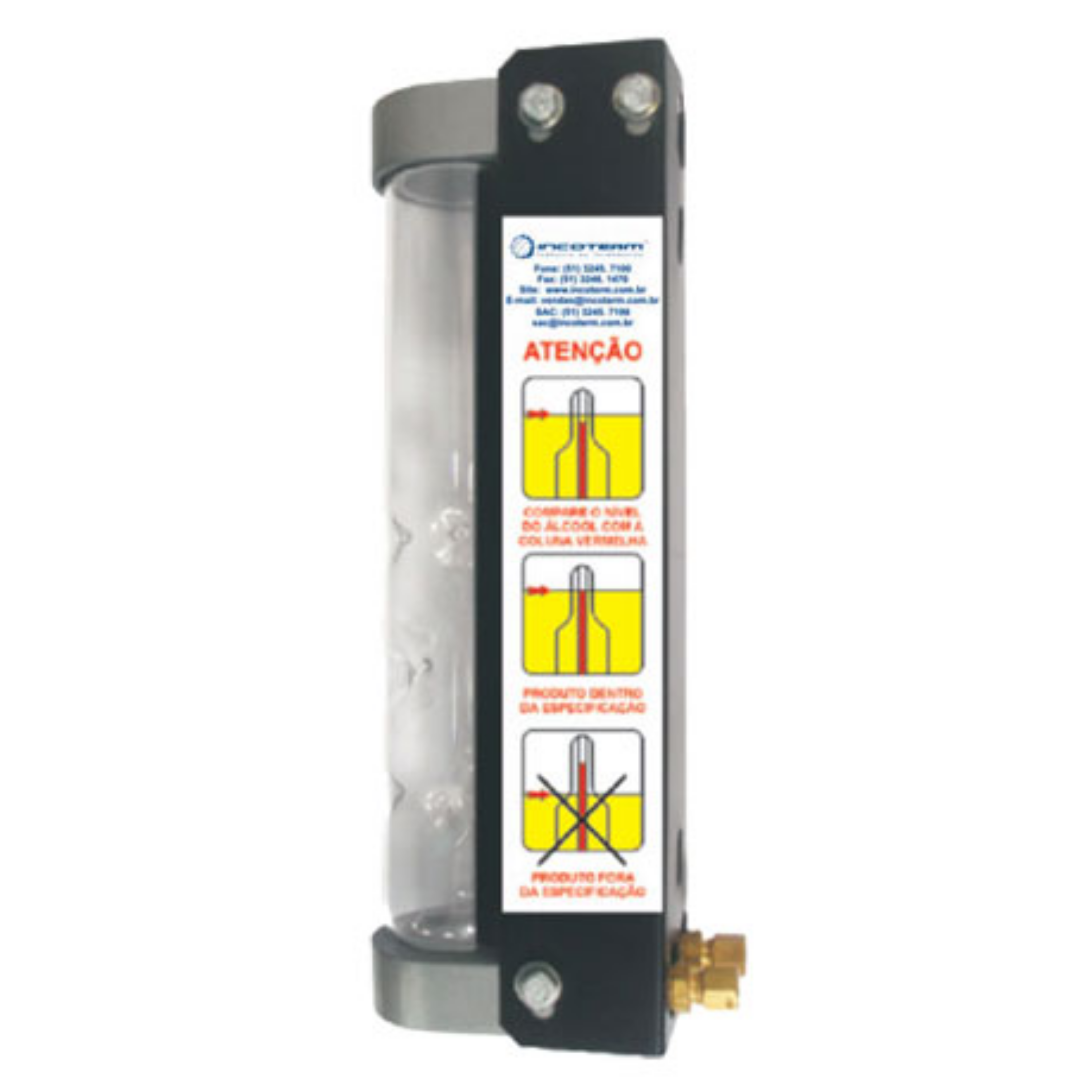 Equipamento constituído por duas bases de metal (alumínio), com um copo condensador de vidro borossilicato e um densímetro flutuador que monitora a verificação do teor alcoólico.