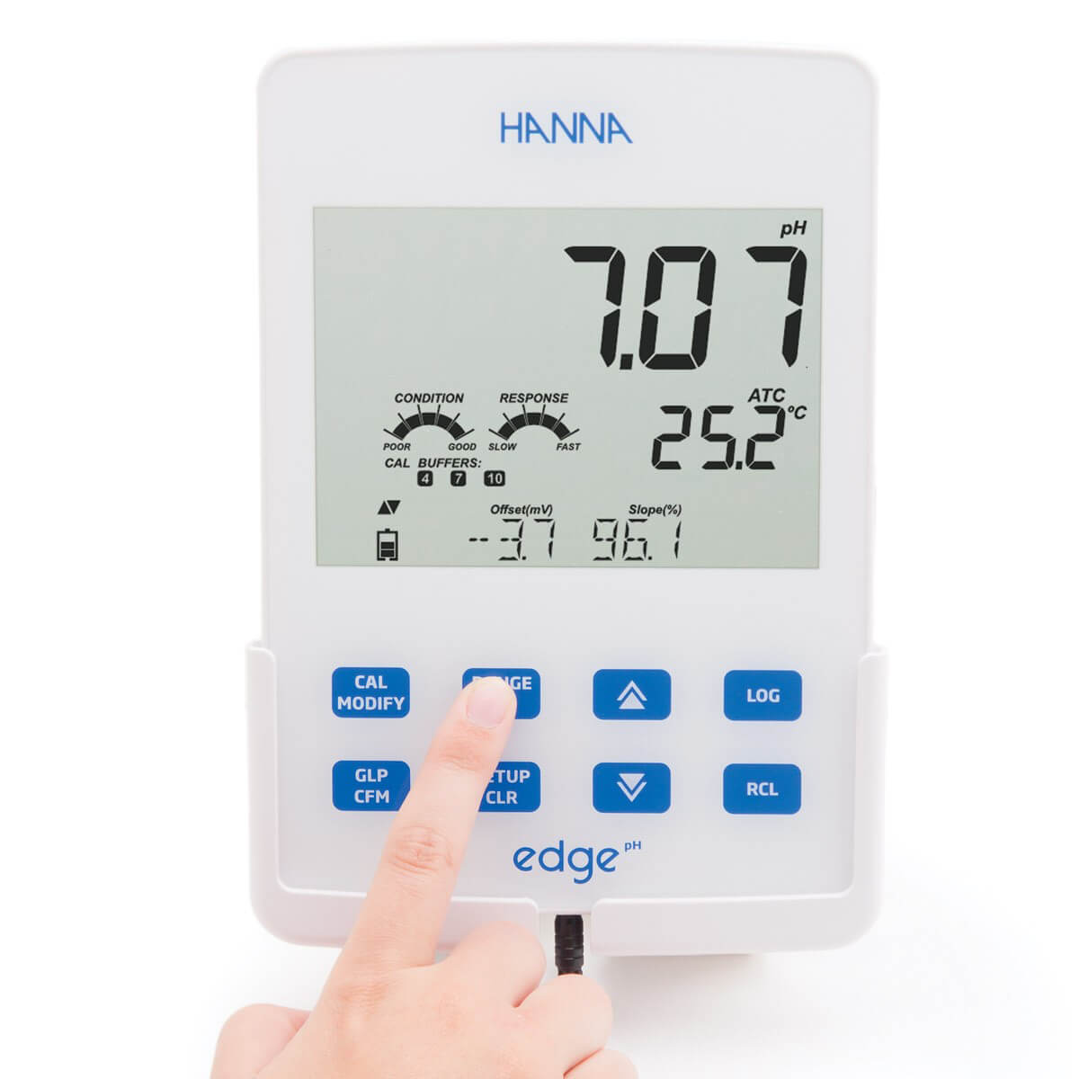 - Conteúdo: O medidor de pH digital edge® HI2002 inclui dock de bancada com suporte para eletrodo, suporte para parede, cabo USB, eletrodo de pH HI11310 com sensor de temperatura, 2 sachês de pH 4, 7, 10, solução de limpeza, adaptador 5 VDC e manual de instruções.