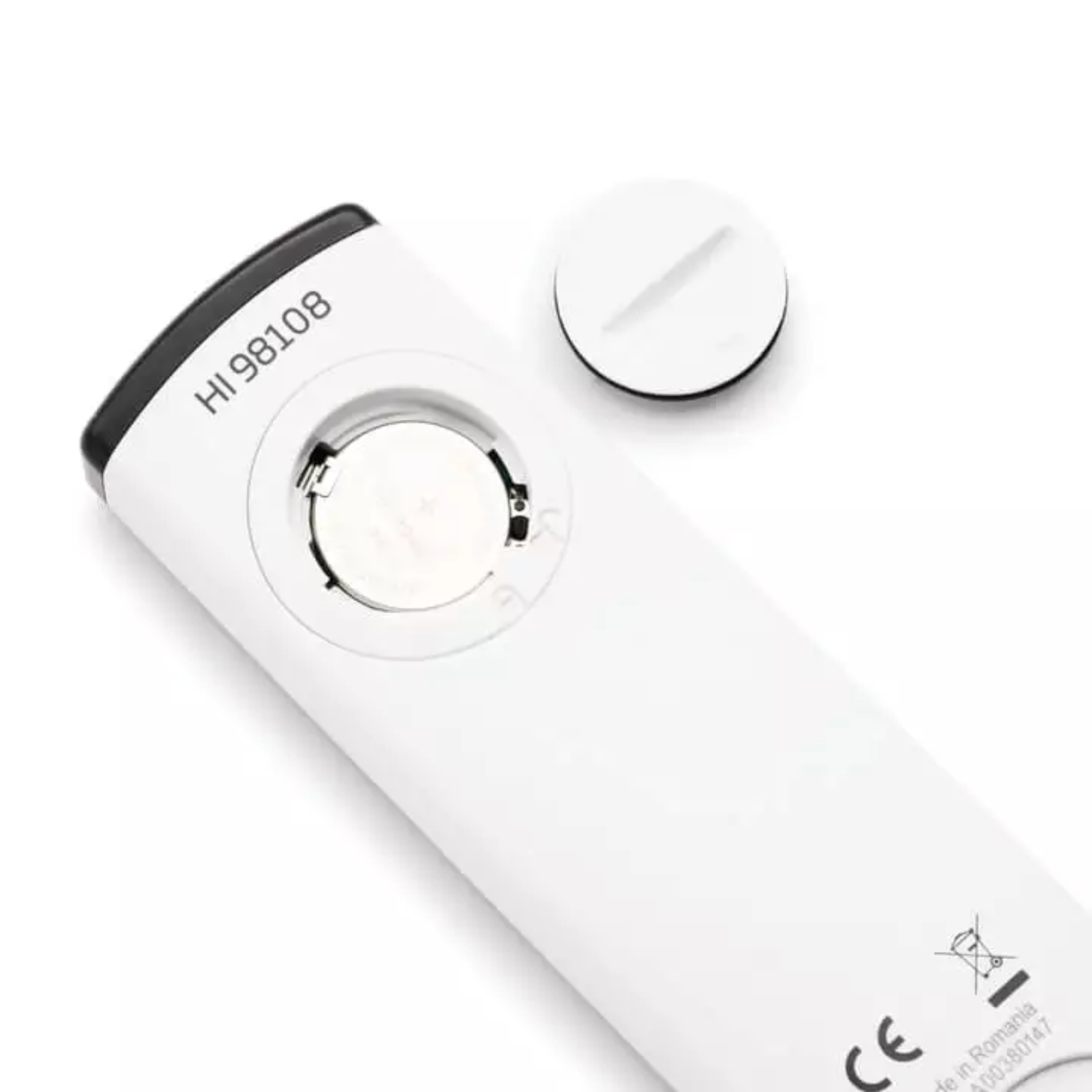 Conteúdo: O pHep+ HI98108 acompanha capa protetora, sachê de solução tampão de pH 4.01, sachê de solução tampão de pH 7.01 (2), sachê de solução de limpeza de eletrodo, bateria CR2032, certificado de qualidade do instrumento e manual de instruções.
