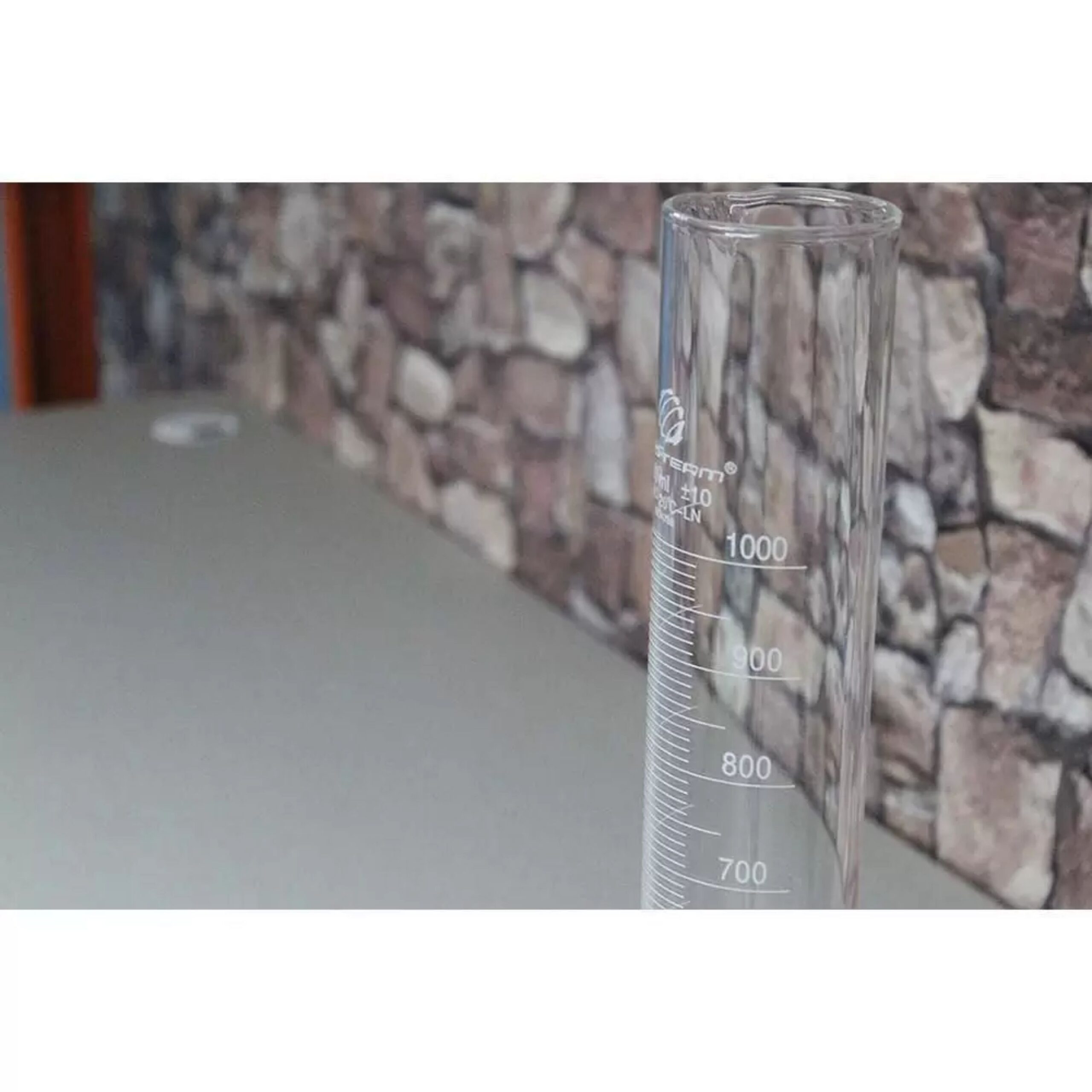 Proveta 1000ml, fabricada em vidro, graduada, com gravação de fácil leitura.