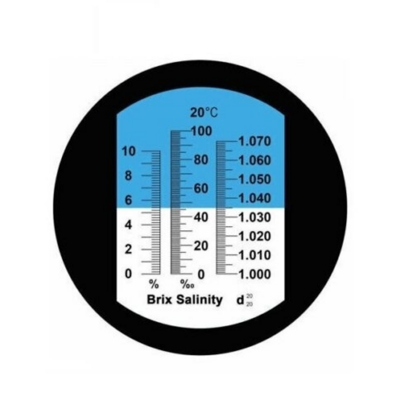 Projetado para testar a concentração de água salgada e salmoura. Fornece uma leitura direta do peso específico e da concentração (partes por mil) de sal na água. Fornece índice refrativo e leituras de salinidade confiáveis de sólidos totais dissolvidos de soluções aquosas.
