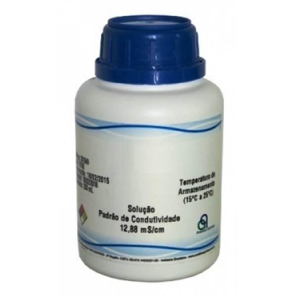 Solução tampão (padrão) de Condutividade Elétrica (EC) com valor nominal 12.88 mS/cm para calibração (ajuste) de condutivímetros.