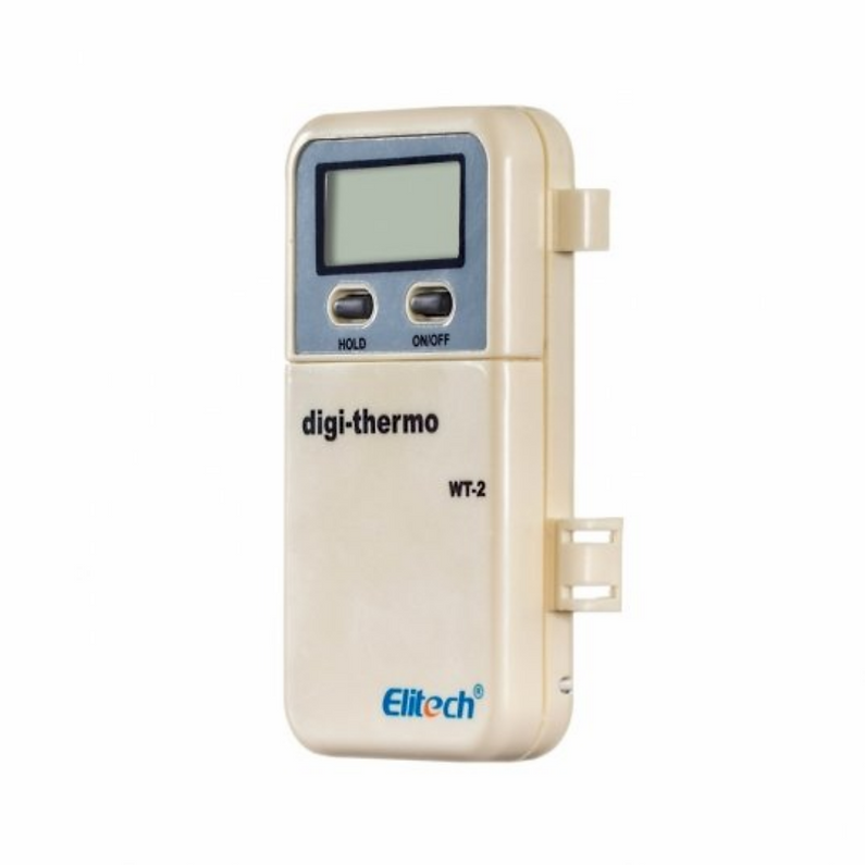 WT-2 Termômetros digitais, com sonda de metal alongada e fio condutor. Opção de °C / °F, memória de máxima e mínima de temperatura, configuração de limite superior e inferior de temperatura e alarme de temperatura excedente, amplamente aplicado a HVAC e indústria de alimentos.