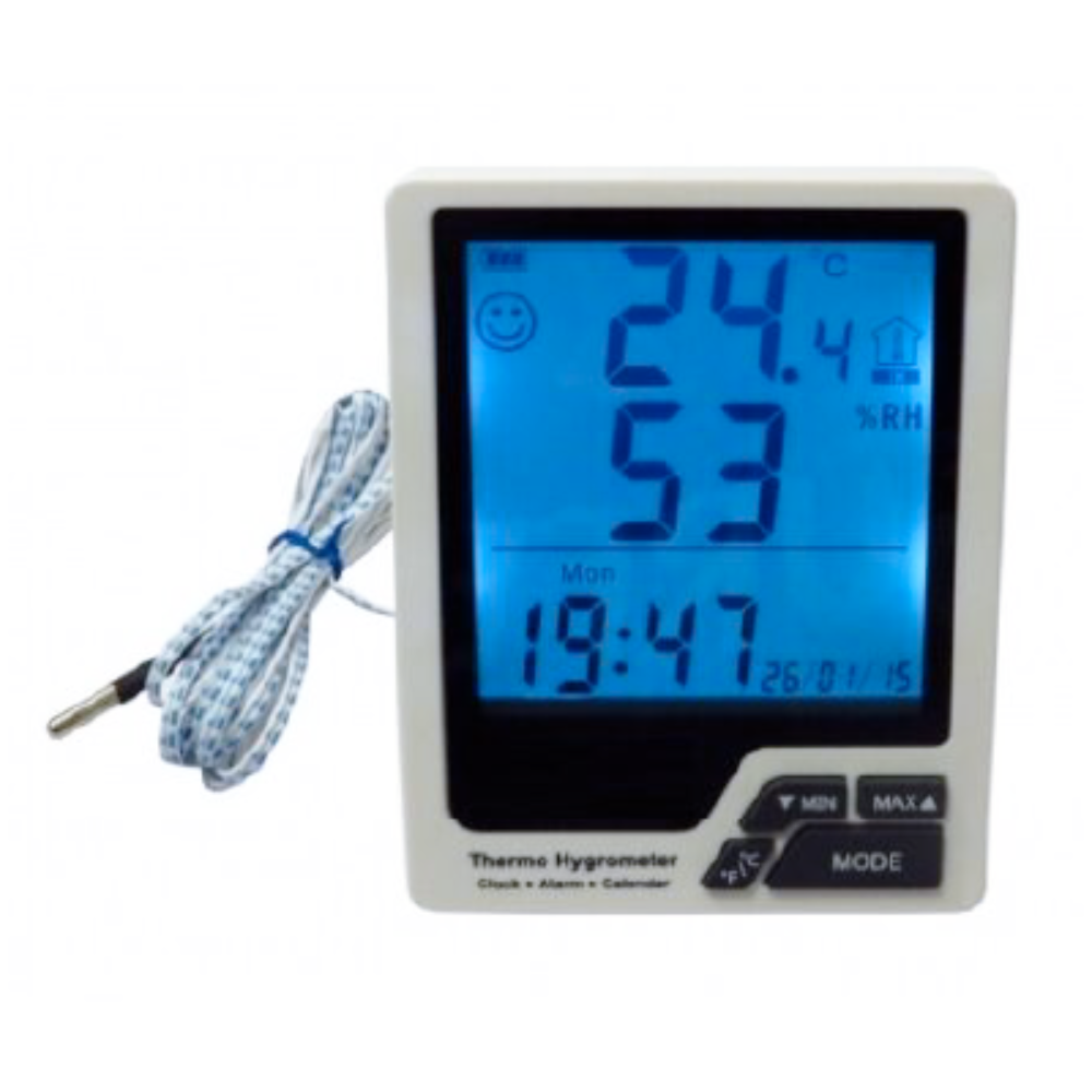 Termo-Higrômetro c/ Sensor Externo Relógio/Alarme/Calendário | PYROMED