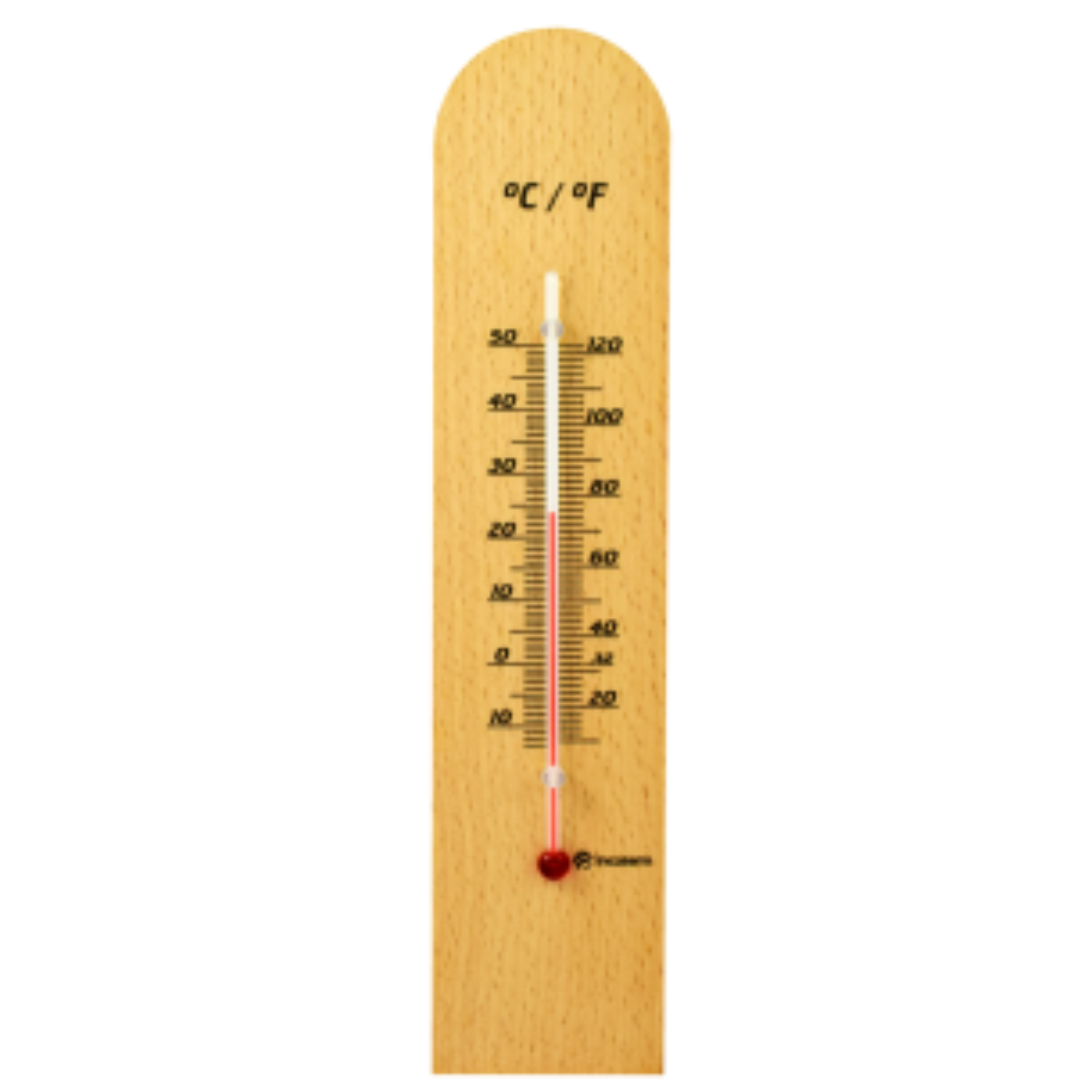 Os termômetros decorativos de madeira da Incoterm são instrumentos com escala de fácil leitura e durabilidade garantida.