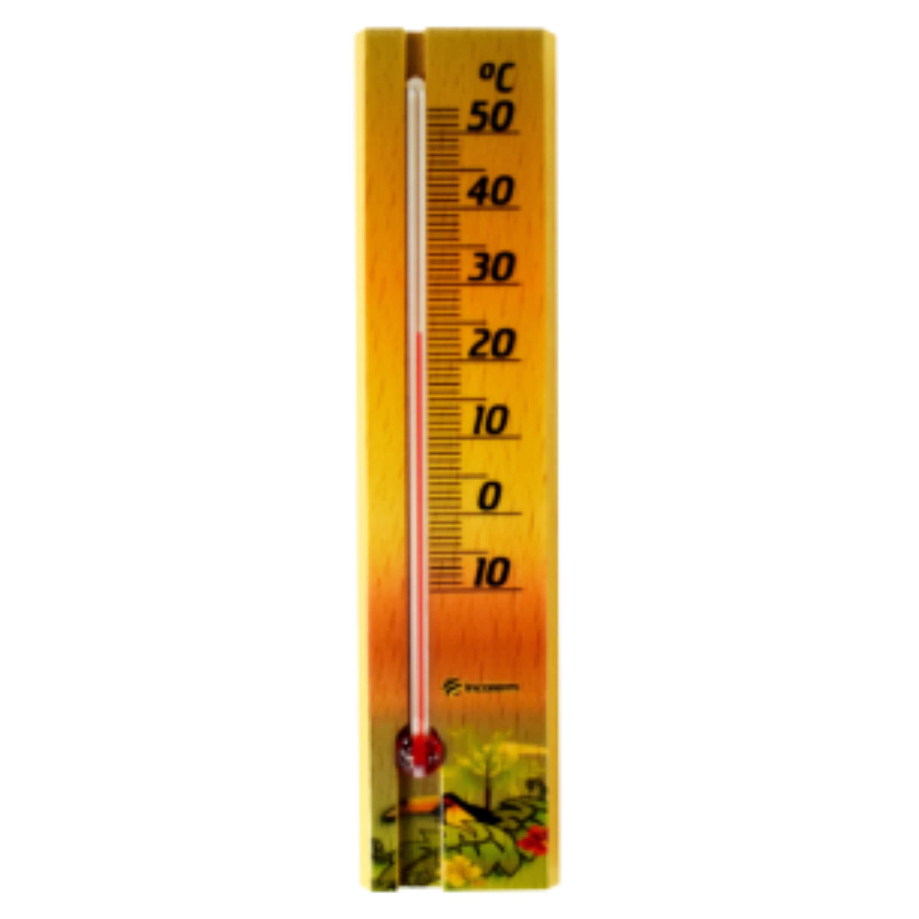 Os termômetros decorativos de madeira da Incoterm são instrumentos com escala de fácil leitura e durabilidade garantida.