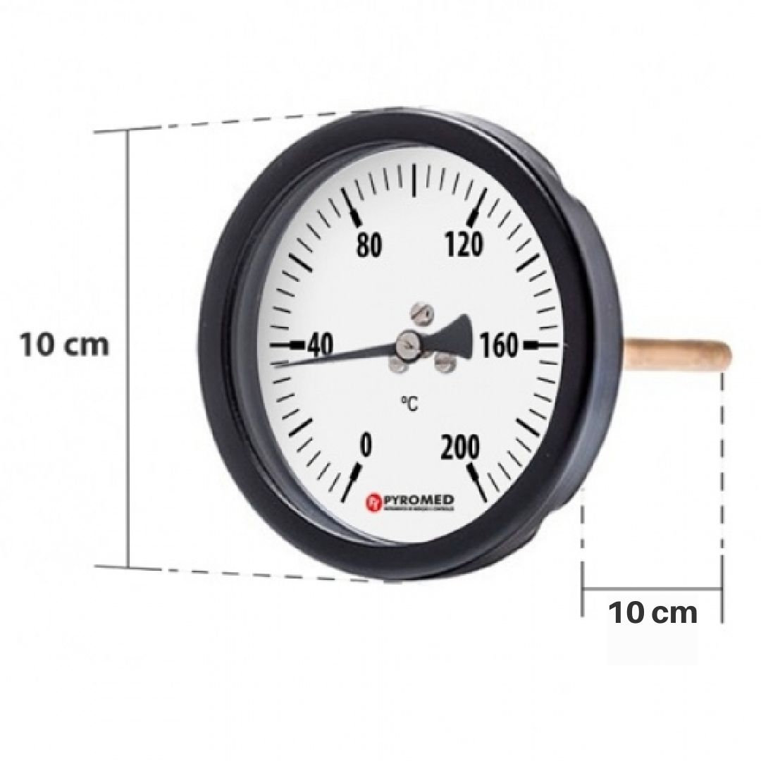 Termômetro Bimetálico Angular 0 +200°C/Haste 100mm | PYROMED