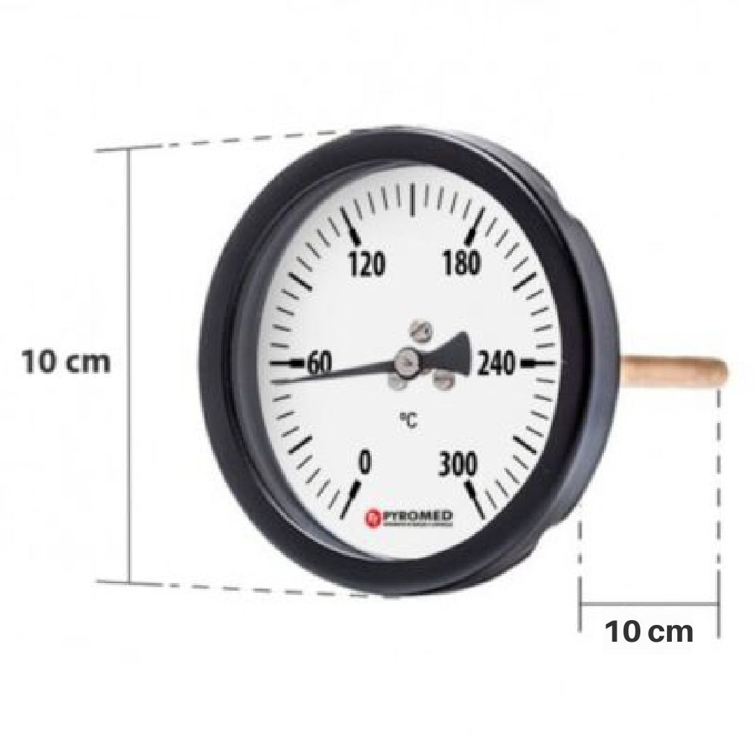 Termômetro Bimetálico Angular 0 +300°C/Haste 100mm | PYROMED