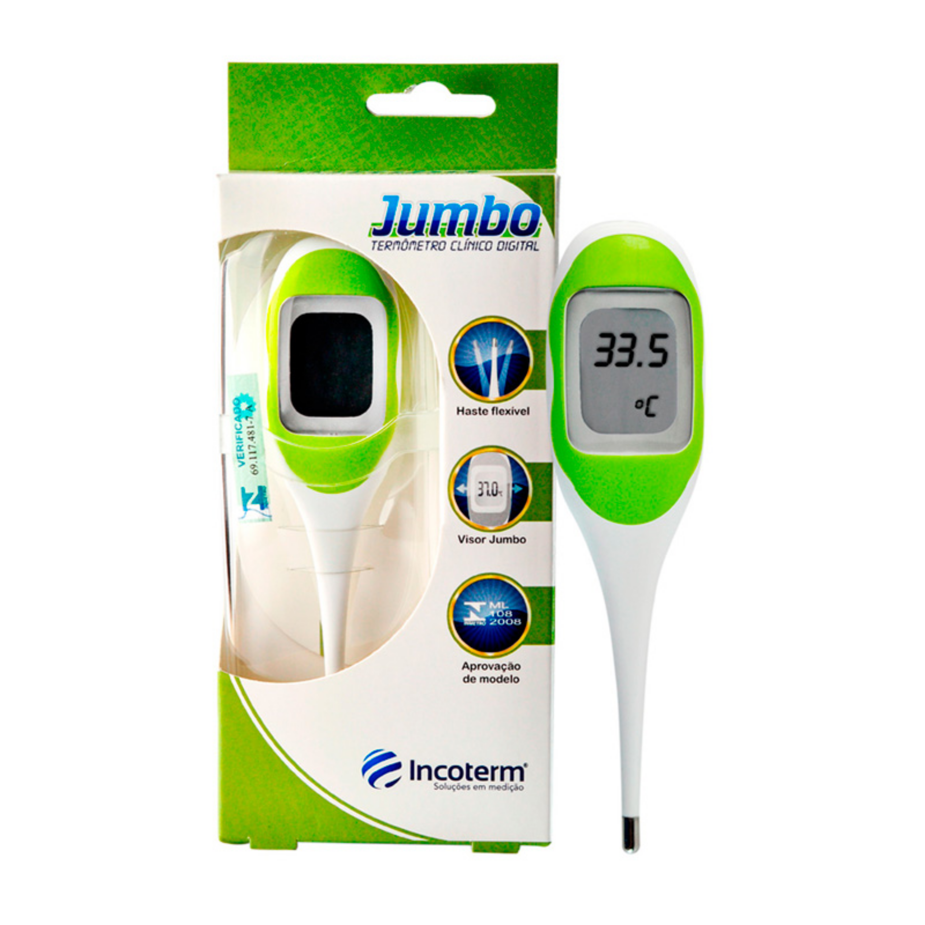 O Termômetro Clínico Digital Jumbo Incoterm é um produto verificado e aprovado pelo INMETRO com precisão e qualidade comprovada. Produto de fácil utilização, durável e com resultados confiáveis.