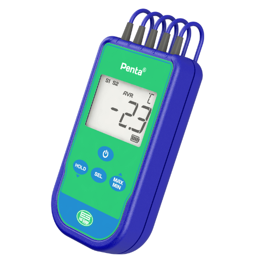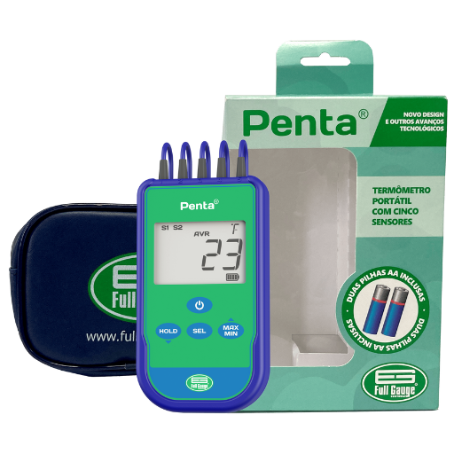 O termômetro portátil Penta monitora e indica a temperatura em cinco pontos distintos e agora conta com novo design e outros avanços tecnológicos, como o baixo consumo de energia: com o Penta permanentemente acionado, as duas pilhas AA alcalinas que acompanham o produto duram até 43 dias; a faixa de operação foi ampliada para operar em temperatura ambiente entre -20°C e 60°C e os sensores medem temperaturas entre -50°C e 105°C; e o display é 20% maior, indicando o nível de carga das pilhas.