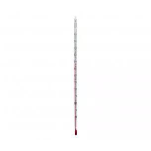 Este termômetro possui imersão total, e por essa razão o instrumento deve ser mergulhado na solução à medida que a temperatura for alterando, de forma que somente o ponto desejado fique visível acima da solução.